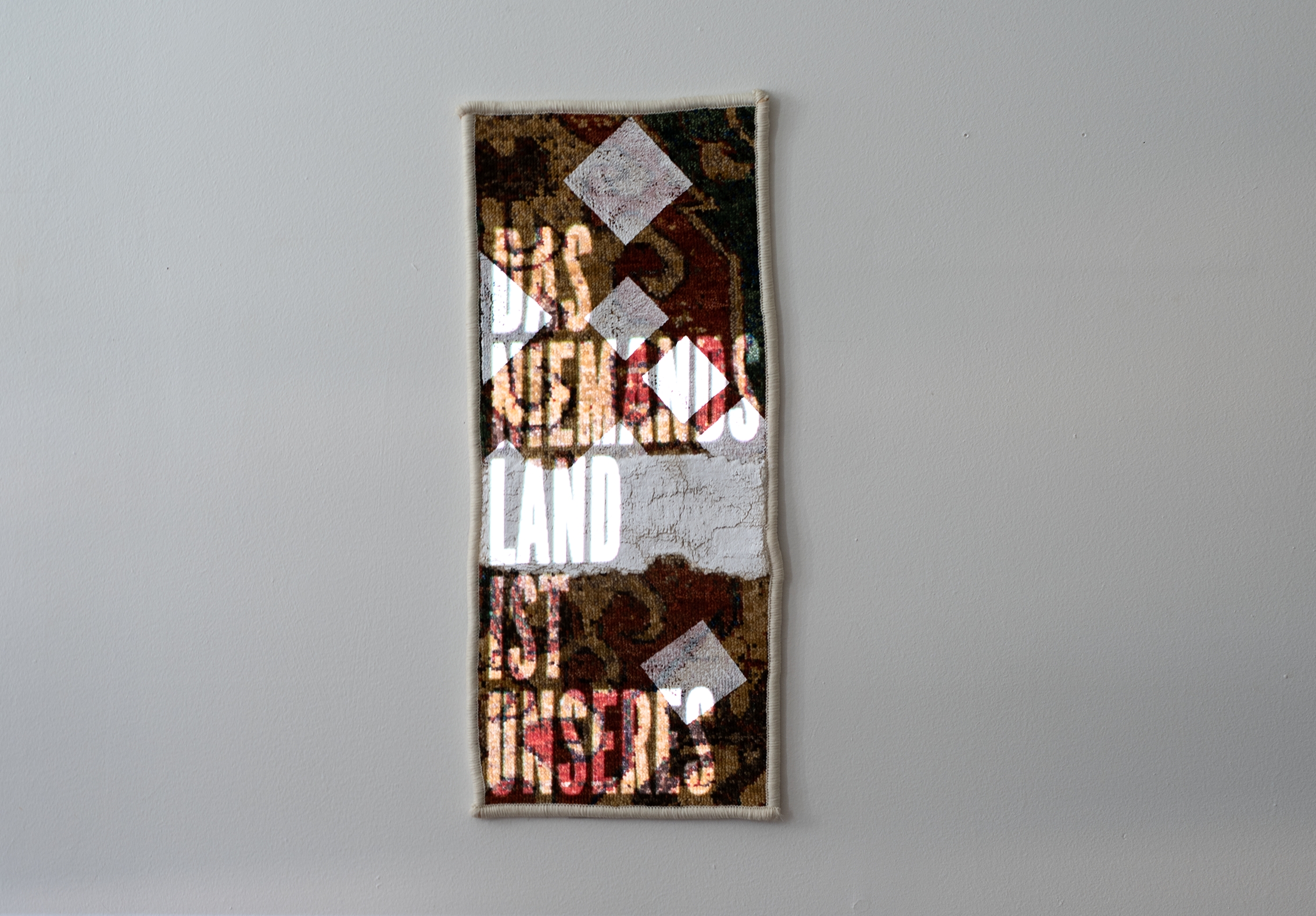 I projected "Das Niemandsland ist unseres (The no man’s land is ours)", the title of a book of poems by SAID, onto the surface of the carpet fragment.