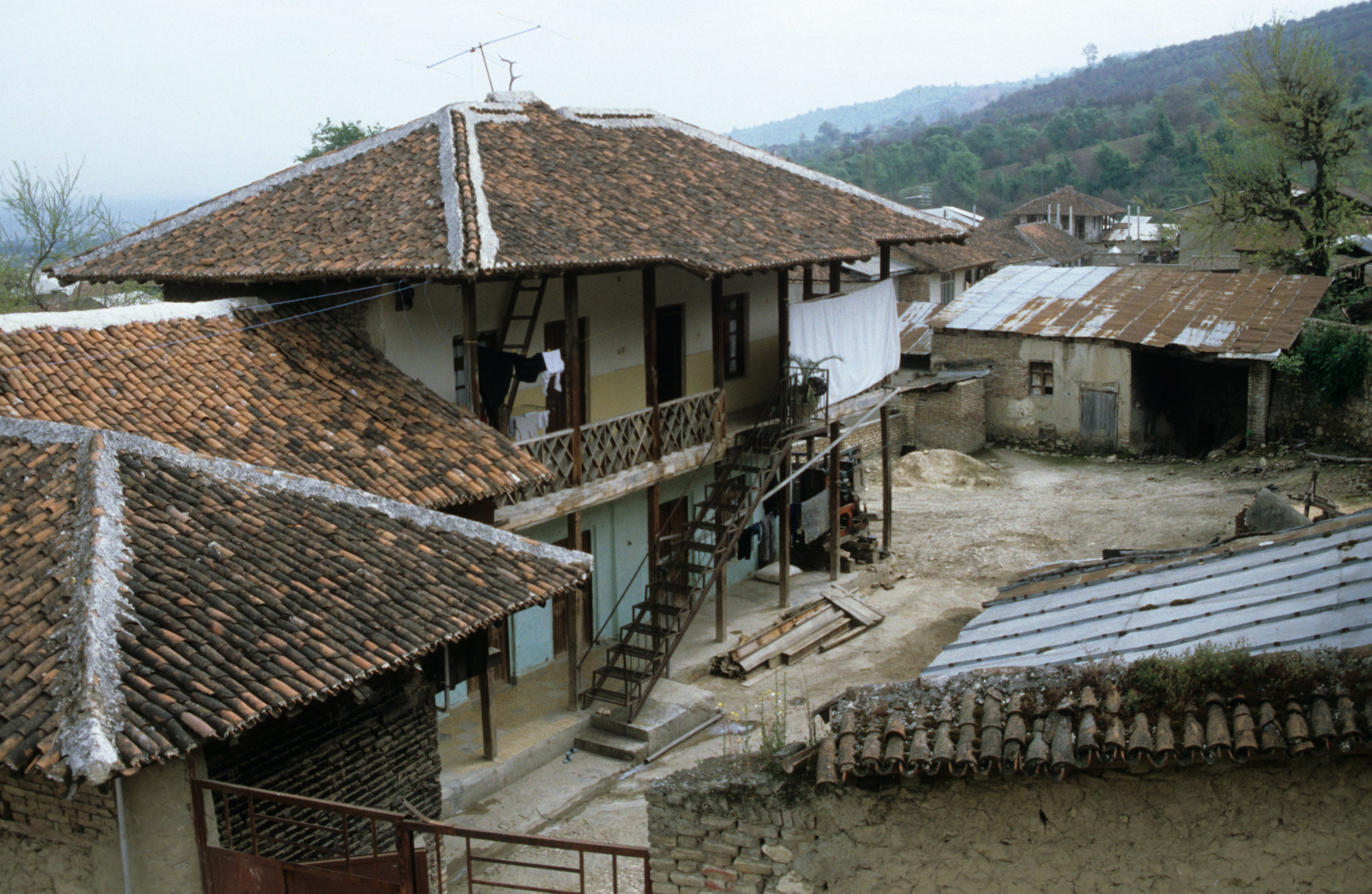 The climate in the Caspian Sea region is characterized by hot and humid summers and cold and wet winters. To protect homes from moisture, preventing dampness from entering the building is essential. One common solution is to raise houses above ground on platforms, often supported by timber stilts. This elevated structure keeps the living spaces dry by avoiding contact with moist soil and allowing air to circulate beneath the building. In many cases, the space below the house is also used to shelter animals, adding practical value to the design. Roofs near the sea are often built with four-sided hips, allowing rainwater to run off on all sides and reducing the risk of water penetrating the ceilings.