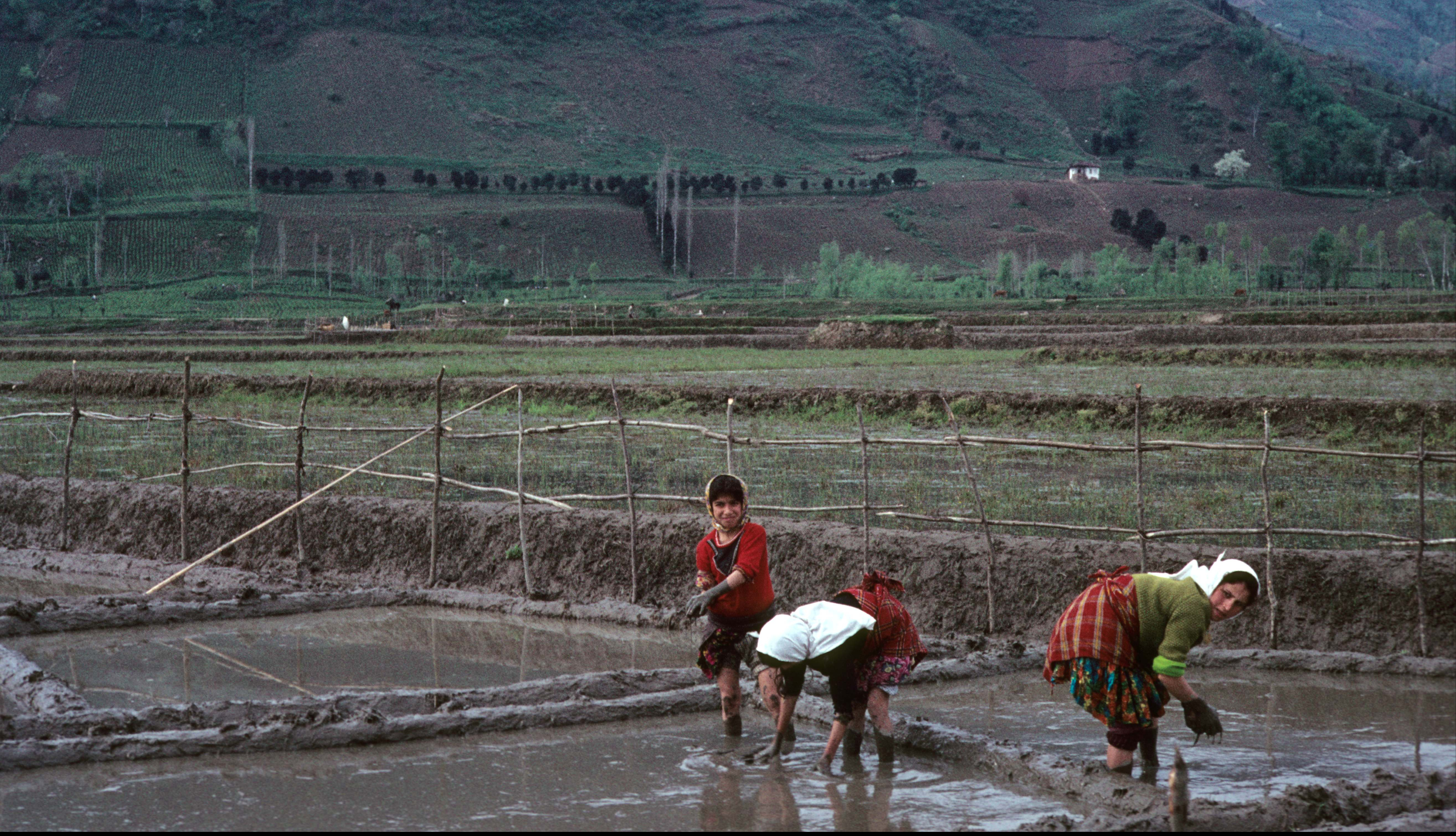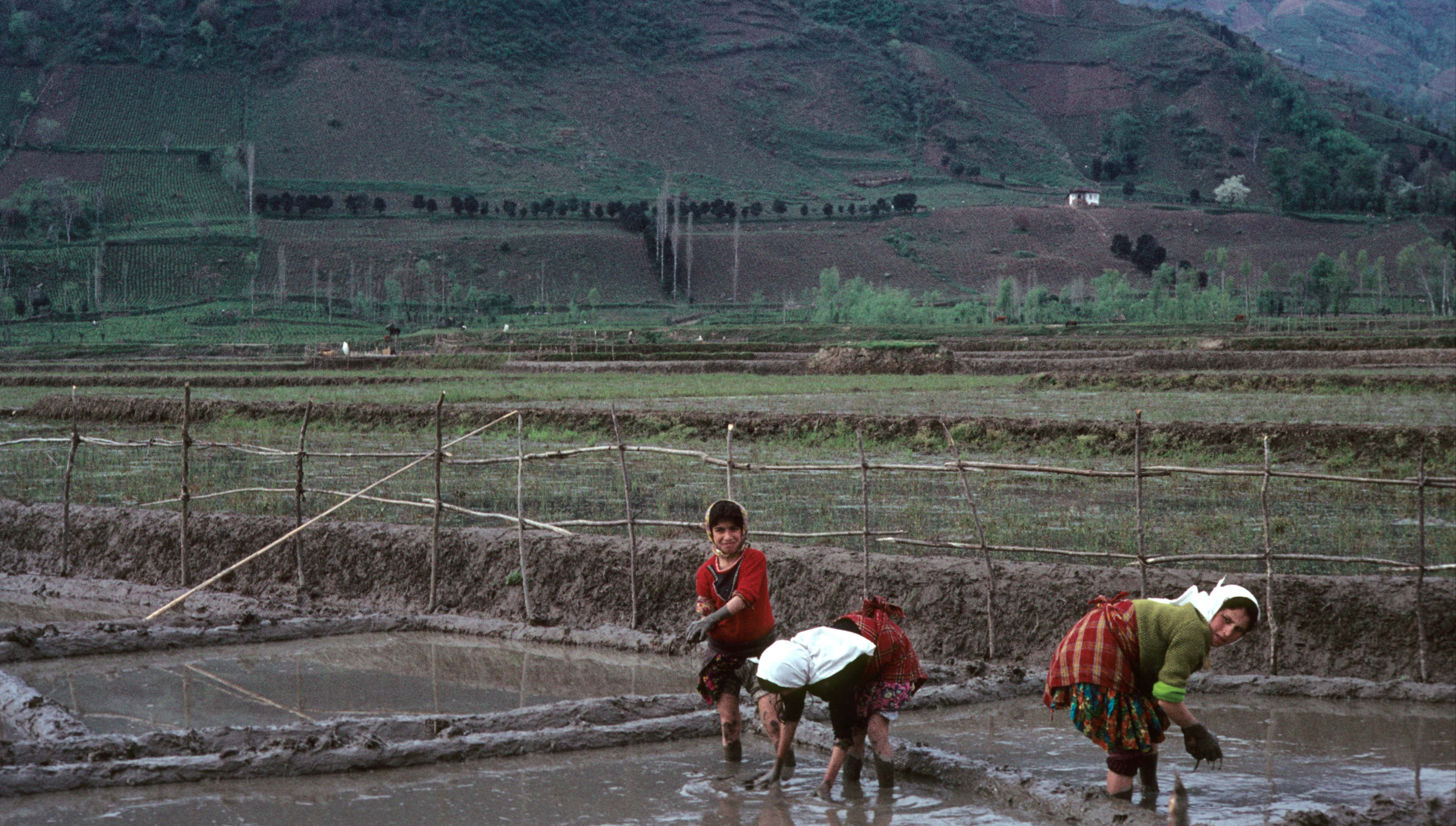 Farmers working on rice fields in northern Iran.