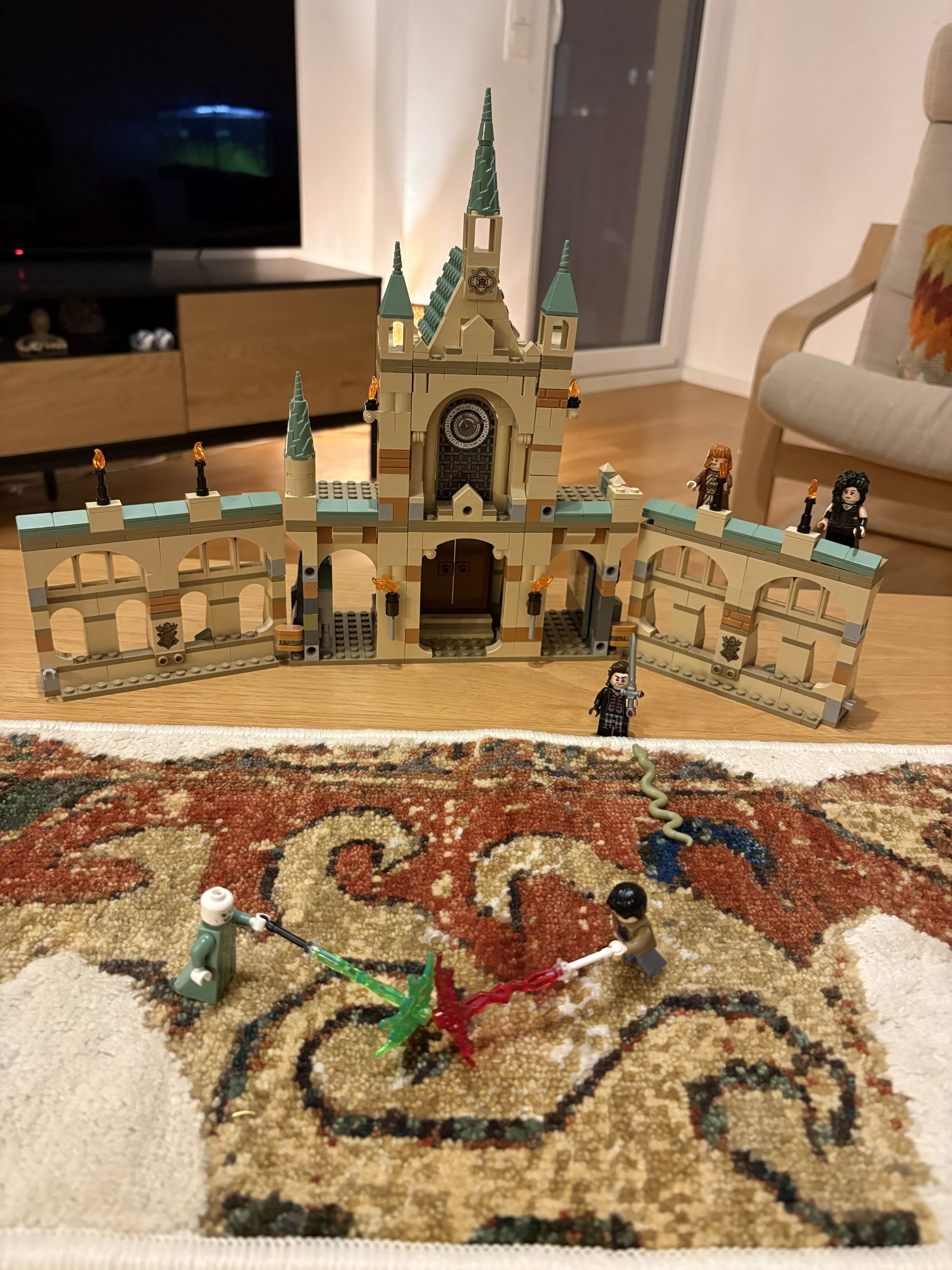 Mein Sohn baute eine Lego-Hogwarts-Schule auf dem Tisch daneben. Plastiktürme ragten neben den verblassten Rot- und Blautönen des Teppichfragments empor und fielen wieder um. Manchmal erzählte ich ihm die Geschichte des Fragments, wie es einst zu einem größeren Teppich gehörte, wie es beschädigt worden war, wie es überlebt hatte. Manchmal blieb es einfach im Hintergrund, eine gewöhnliche Präsenz im Raum.