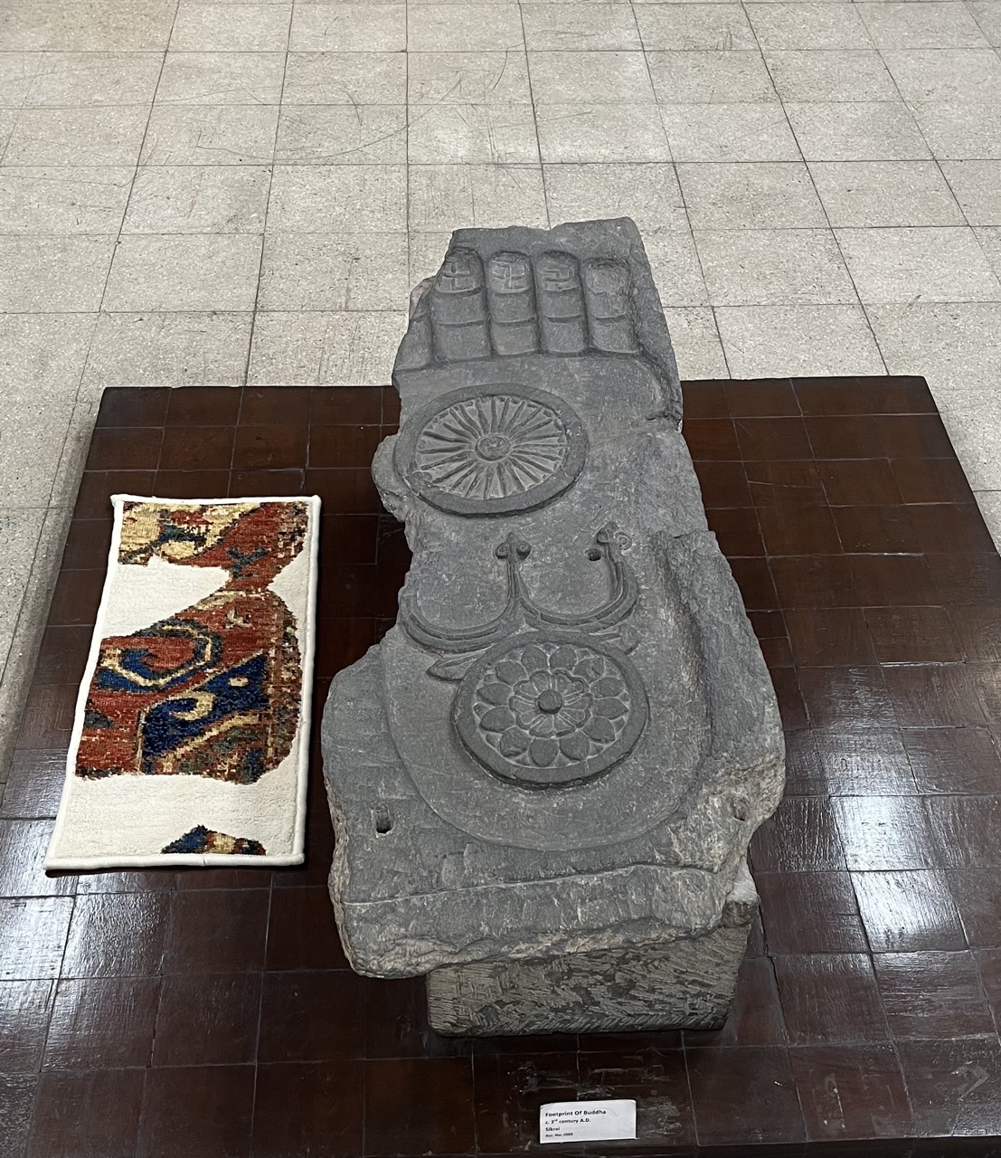 Im Zuge der Unabhängigkeit Indiens nach dem Zweiten Weltkrieg wurden Menschen und Kulturerbe geteilt und vertrieben. Eine Hälfte dieses Fußabdrucks des Buddha (Buddhapada) befindet sich in Lahore, während die andere Hälfte hier in Chandigarh aufbewahrt wird.