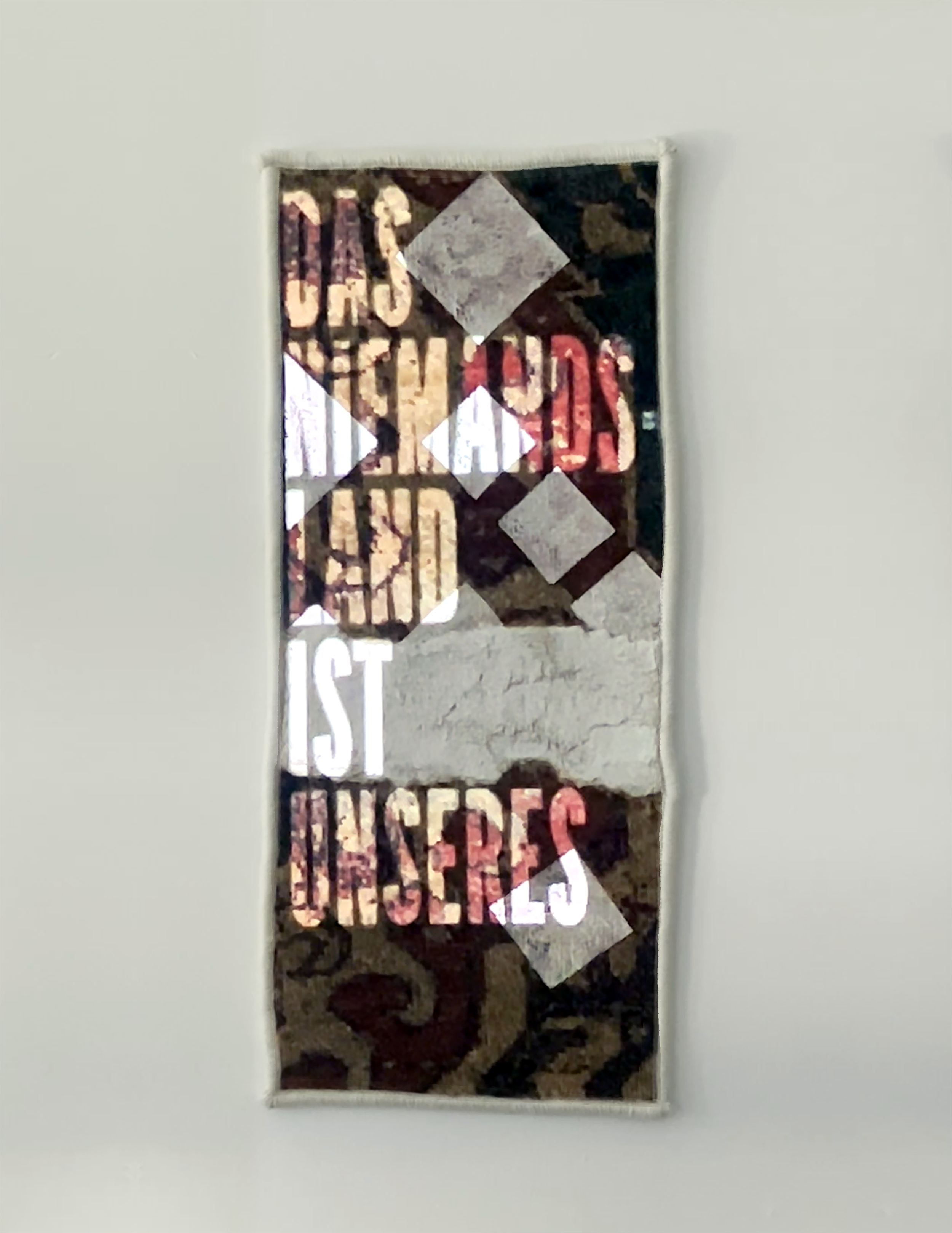 Ich projizierte „Das Niemandsland ist unseres“, den Titel eines Gedichtbands von SAID, auf die Oberfläche des Teppichfragments.