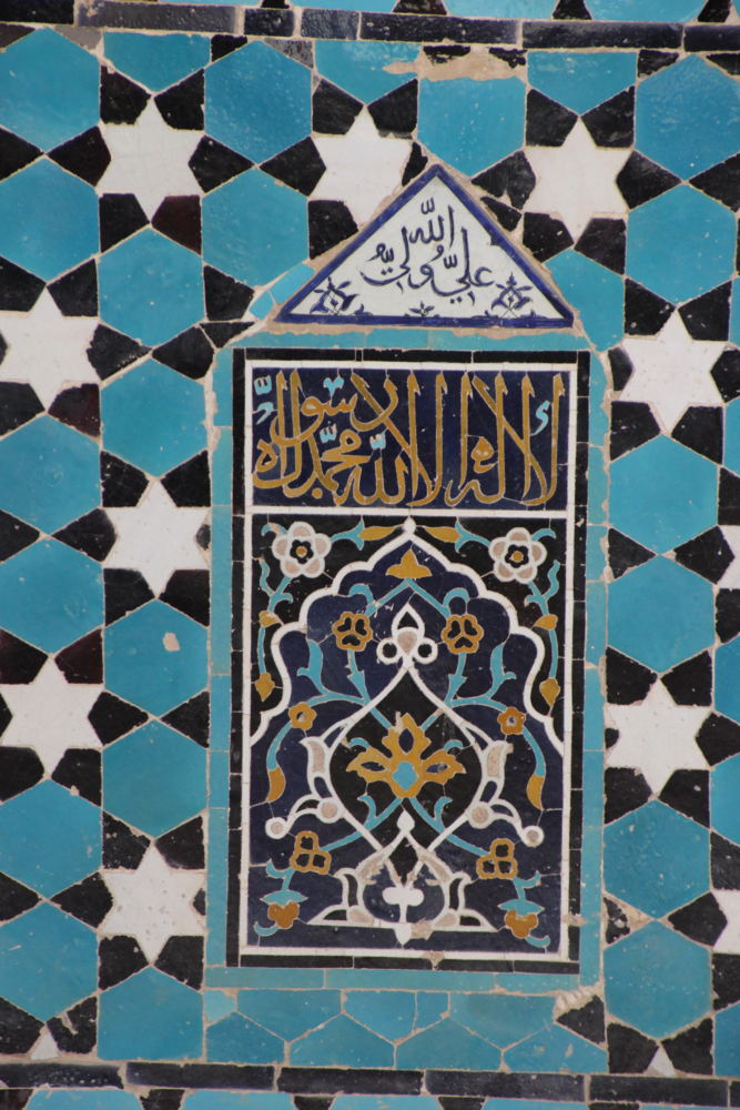 Die übrigen Inschriften stammen aus den Suren 76, 17, 97 und 112. Vier der Verse wurden wegen ihres direkten oder indirekten Bezugs zum Gebet ausgewählt, andere bekräftigen den islamischen Glauben in allgemeinerer Form. Die einzige konfessionell eindeutig zuzuordnende Inschrift befindet sich auf dem rechten Kapitell; dort ist die schiitische Vorstellung festgehalten, dass ʿAli als Repräsentant Gottes wirkt. Alle übrigen Inschriften gehen über eine konfessionelle Zuordnung hinaus.
