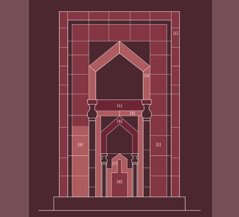 Der Mihrab ist mit heiligen Versen bedeckt, doch sind die Inschriften in stark ornamentierten Schriftformen ausgeführt und für Besucher:innen der Moschee kaum zu entziffern. Für die Betenden, die vor ihm standen, mussten die Worte jedoch gar nicht im Einzelnen lesbar sein. Vielen Gläubigen genügt schon ein einziges Wort, um den gesamten Text innerlich zu „hören“. Erst durch die rituelle Verrichtung des Gebets wird das gesamte Kunstwerk vollendet.
